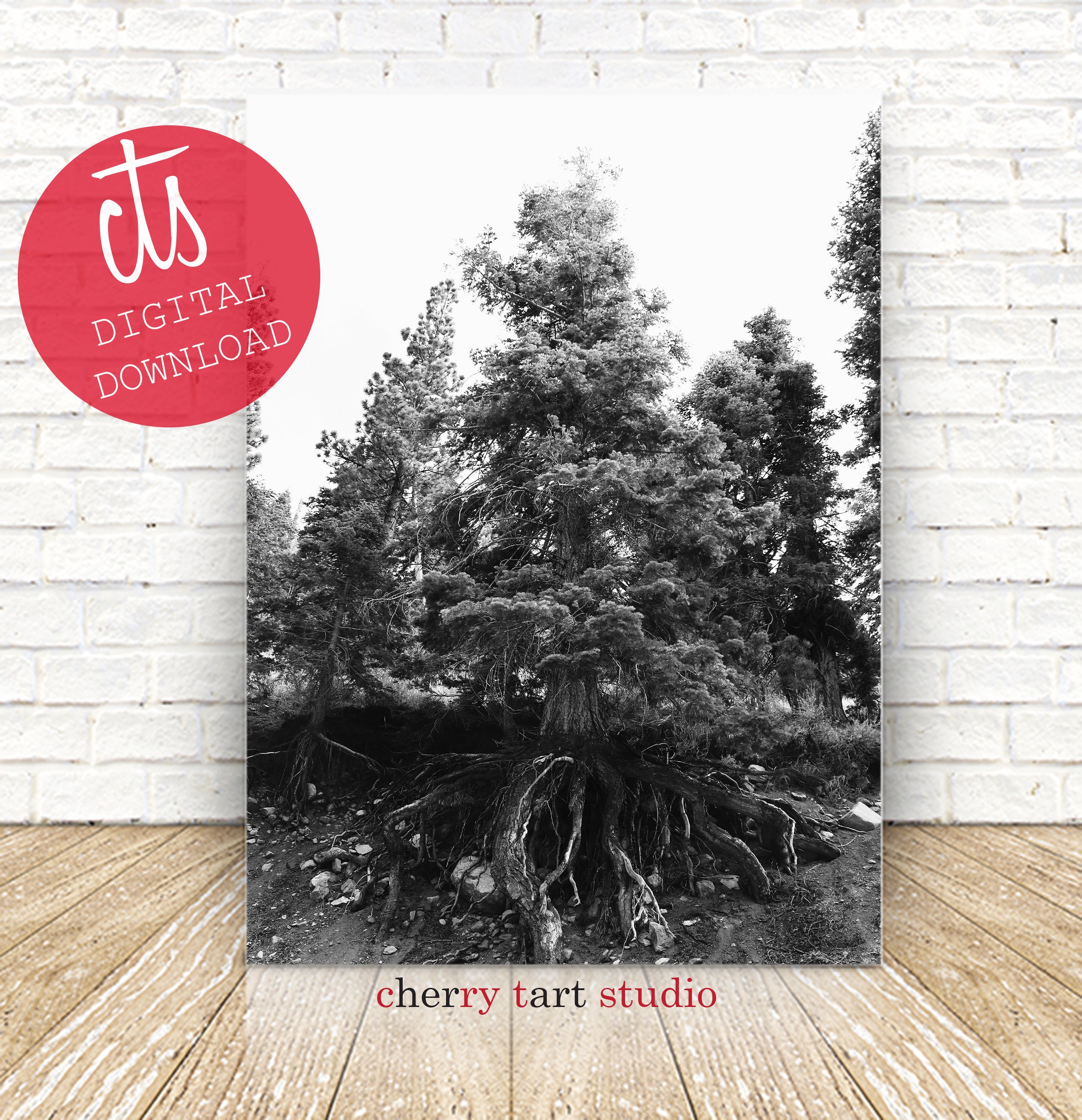 Old Pine Tree With Root System Exposed Black And White Fine Etsy Finland